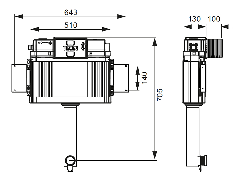 TECE 9041308 Сливной бачок Uni 2.0 с системой монтажа панелей смыва "easy fit" для установки в каркасе..
