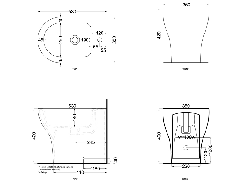 CIELO ENJOY 53 EJBI Биде напольное с одним отверстием под смеситель,с переливом. В комплекте с креплениями. Размер: 35x53x42 h см.