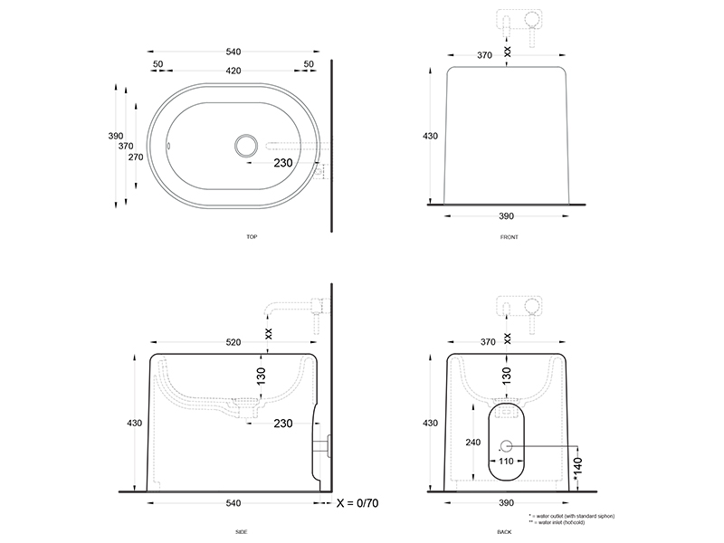 CIELO ITACA ITBI Биде напольное без отверстия под смеситель, с переливом. Крепления в комплекте. Размеры: 53x 37x42h см. Цвет Gloss White.