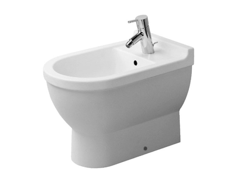 Биде напольное DURAVIT STARCK III 223010 00 00 с переливом, с плоскостью под смеситель, одно отверстие под смеситель, крепление включено в поставку, размер 36х56 см, цвет белый.