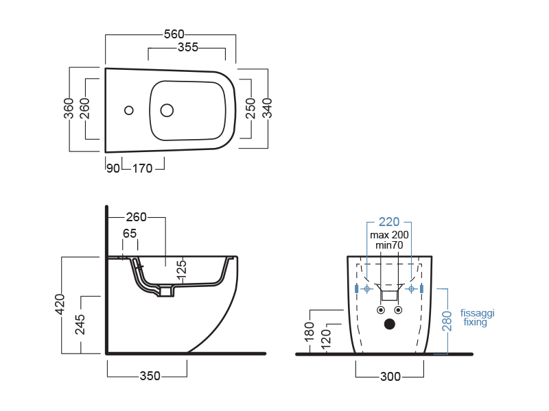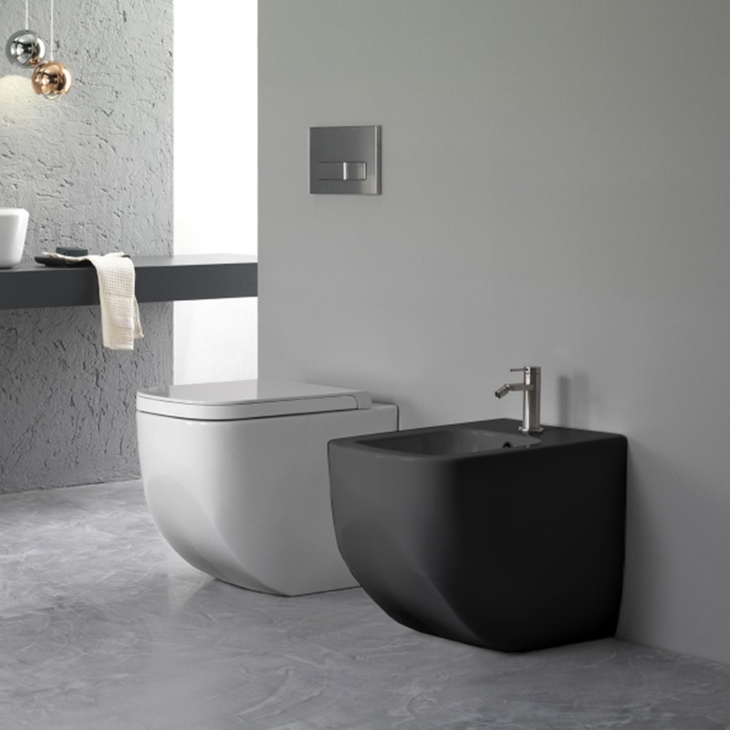 Биде приставное HATRIA NEXT A0Y3AU02, одно отверстие под смеситель, размер 36x56 см, цвет черный матовый, система креплений в комплекте. Донный клапан и сифон приобретаются отдельно.