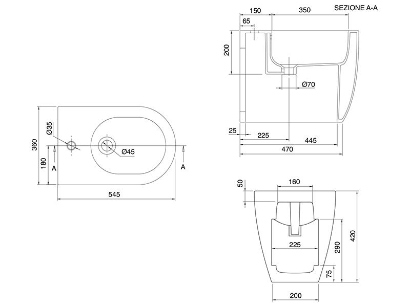 MOON Биде напольное,цвет White