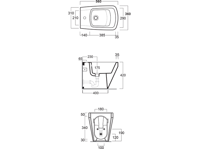 Биде приставное SIMAS BADEN-BADEN BB 04 bia / F91, с переливом, с 1 отверстием под смеситель, крепления в комплекте, размер 56x36x42 см, цвет белый глянцевый.