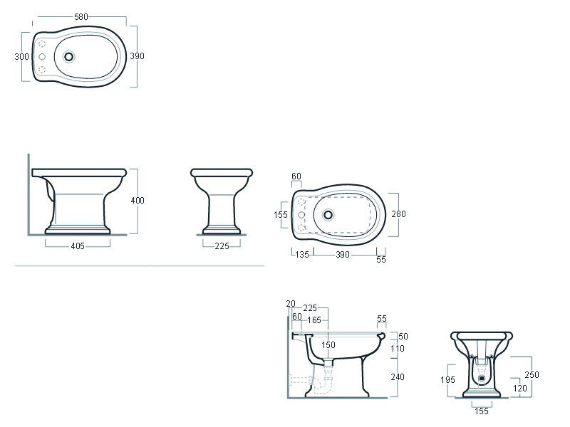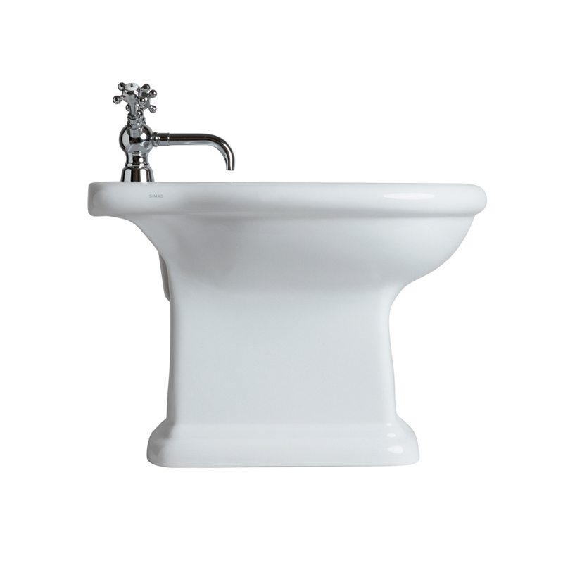 Биде напольное SIMAS LANTE LA 04, 1 отверстие для смесителя (еще 2 намеченных отверстия), с переливом, размер 58х39х40 см, цвет белый.