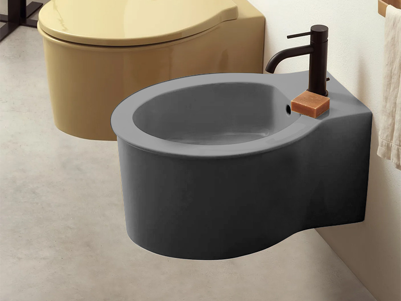 CIELO I CATINI CABS Биде подвесное c одним отверстием под смеситель, с переливом. В комплекте с крепежами. Предусмотрена установка только с заниженным сифоном SIFR. Размеры: 56x38 xh27 см. Цвет Cemento.