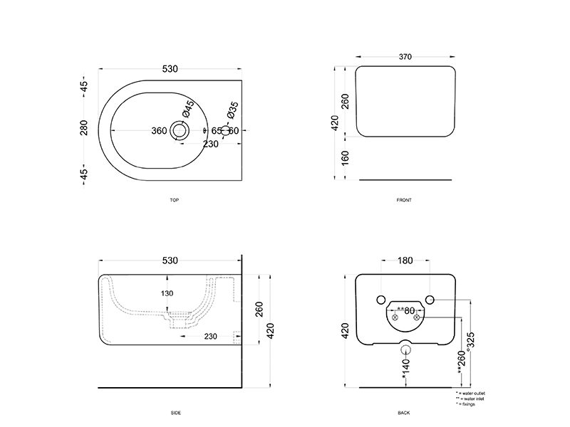CIELO ITACA ITBS Биде подвесное с одним отверстием под смеситель, с переливом. Крепления в комплекте. Размеры: 53x37x26h см. Цвет Arenaria.