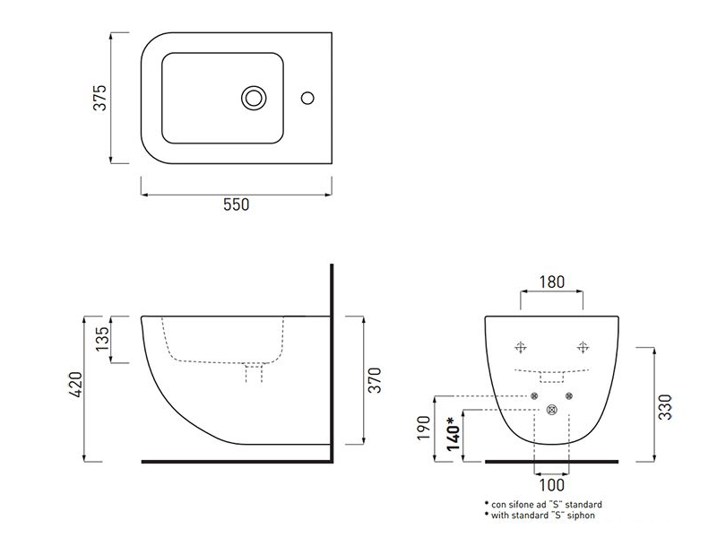 Биде подвесное CIELO Shui SHCOBS, с одним отверстием под смеситель, размер 37,5х55х37 см, цвет белый.