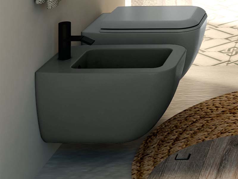 CIELO SHUI COMFORT SHCOBS Биде подвесное с одним отверстием под смеситель, с переливом в комплекте с крепежами. Размеры: 37,5x55x37,5 h см. Цвет Cemento.