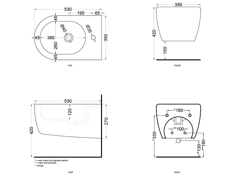 | Установка | Подвесная |