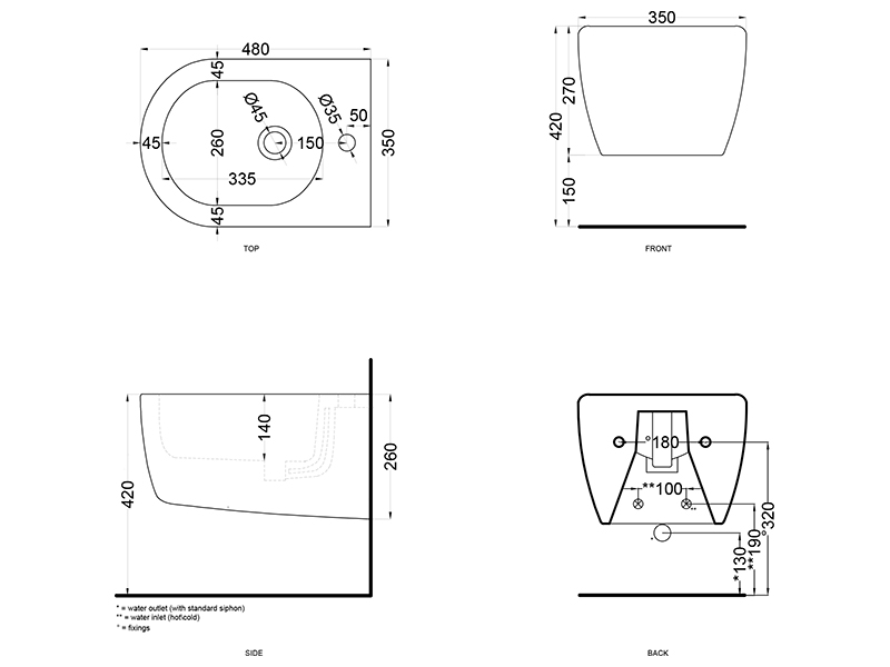 SMILE Биде подвесное 1 отв под смеситель с комплектом креплений,цвет talco