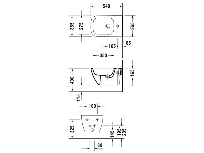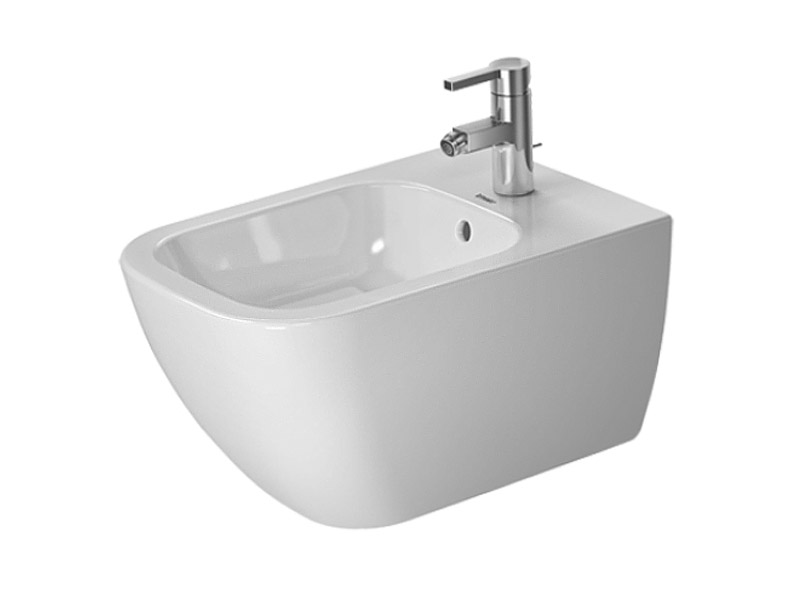 Биде подвесное DURAVIT HAPPY D. 225815 00 00 с переливом, с плоскостью под смеситель, 1 отверстие под смеситель, включая заглушку для перелива и крепление Durafix, размер 36х54 см, цвет белый.