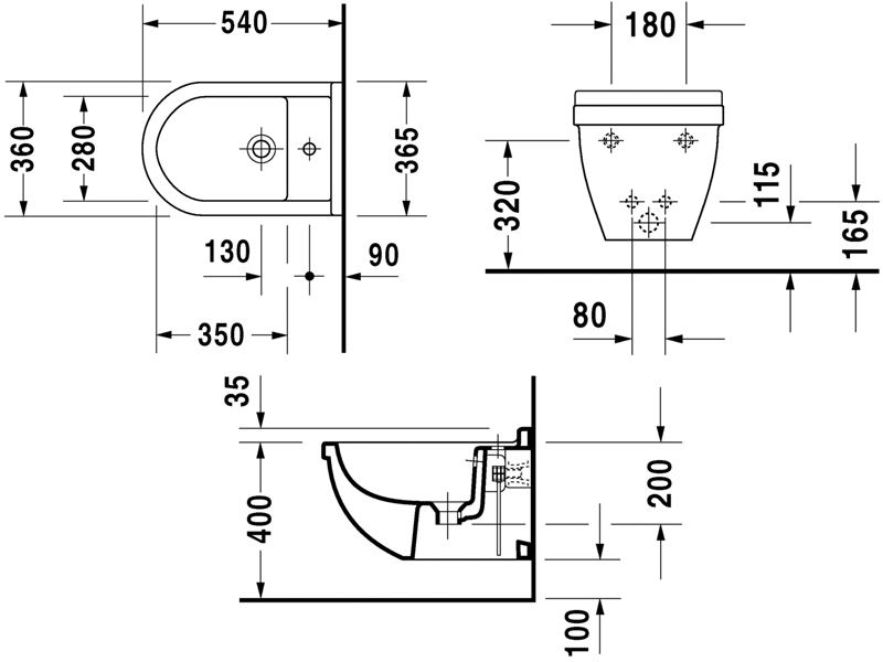 STARCK 3 Биде подвесное с переливом, с плоскостью под смеситель, 1 отверстие для смесителя, размер 36х54 см, цвет белый