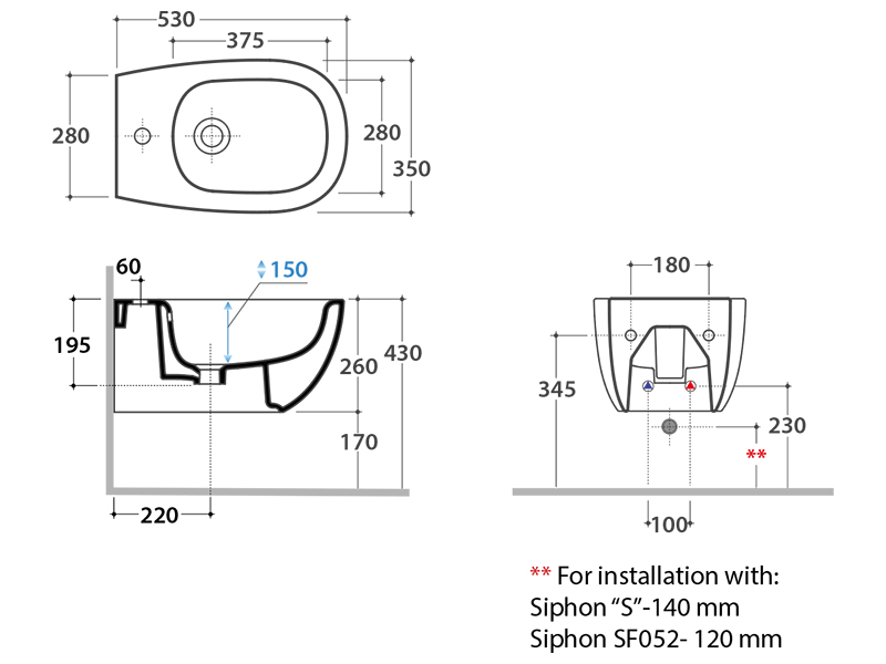 | Установка | Подвесная |