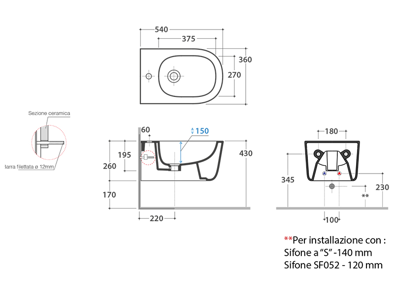 | Установка | Подвесная |