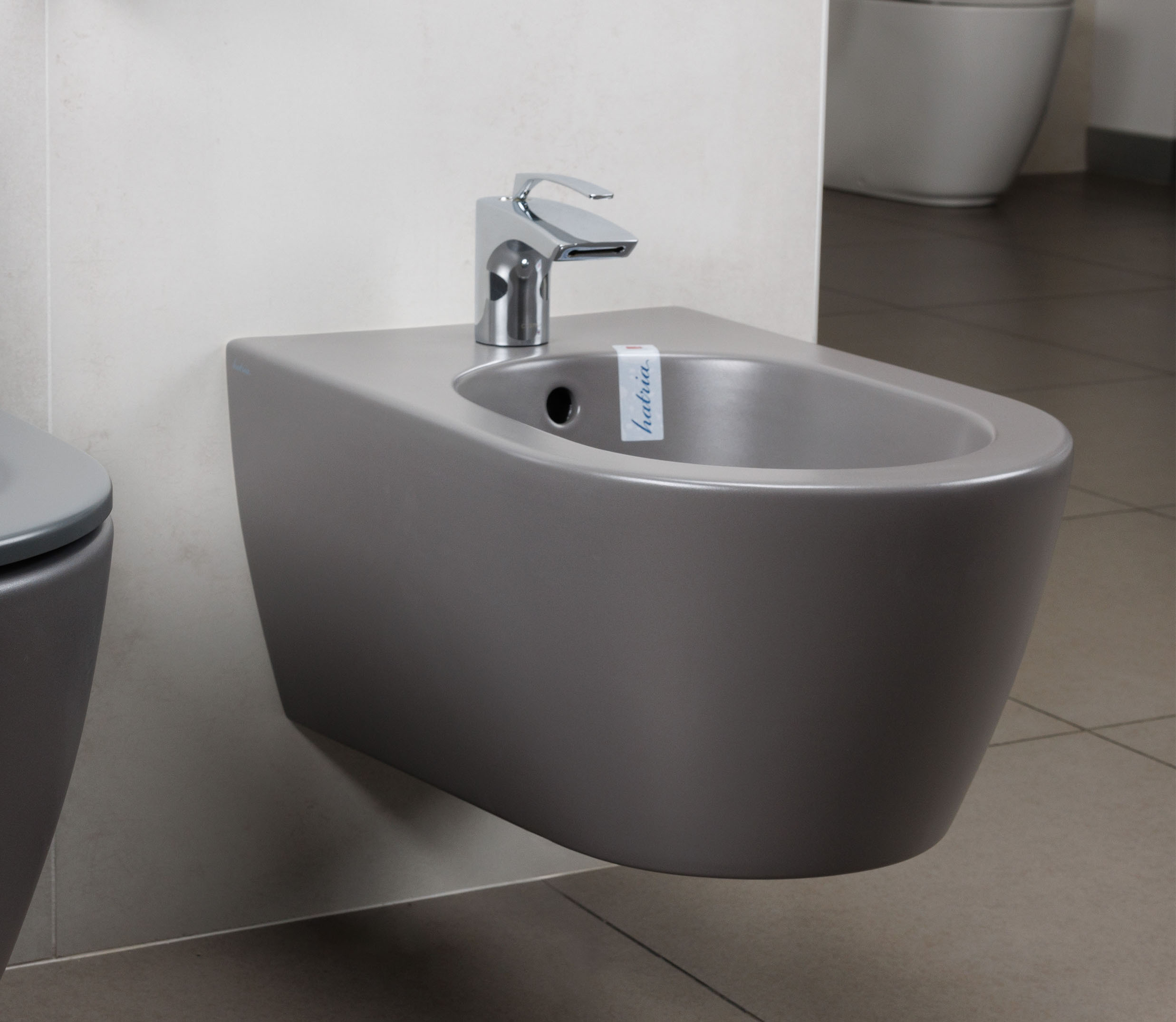 Биде подвесное HATRIA FUSION A0Y1D908, одно отверстие под смеситель, с переливом, размер 35.5x54 см, цвет антрацит, система креплений в комплекте. Донный клапан и сифон приобретаются отдельно.