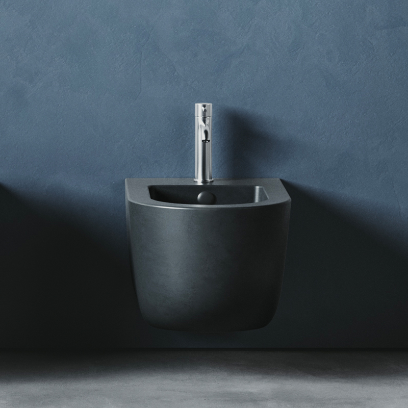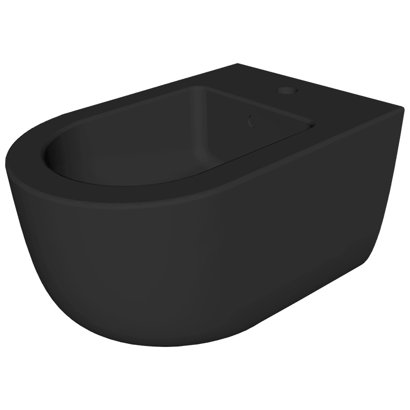 Биде подвесное HATRIA FUTURA A0Y9B802, с одним отверстием под смеситель, с переливом, размер 35.5x53 см, цвет черный матовый. Крепления в комплекте. Сифон и донный клапан приобретаются отдельно. Установка на систему инсталляции для подвесных изделий.