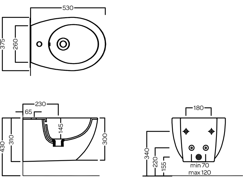 PLANETA Биде подв. с 1 отв. под смеситель, белый