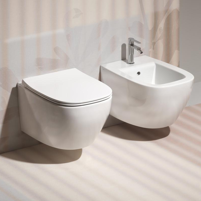 КОМПЛЕКТ Биде подвесное SIMAS JUNIPER JU19 bia matt с одним отверстием под смеситель, с переливом, размер 53,5x37x32 см, цвет белый матовый. Крепления в комплекте.