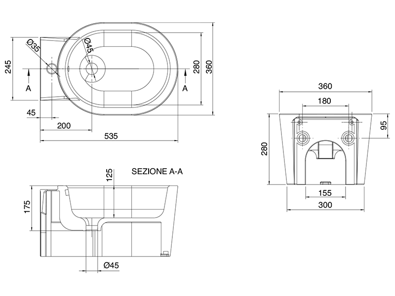 Второе преимущество биде Scarabeo - наличие отверстия под смеситель. Это позволит вам легко установить смеситель, дополняя функциональность и комфорт использования. Также, биде имеет перелив, что улучшает гигиеничность использования и облегчает уход за ним.