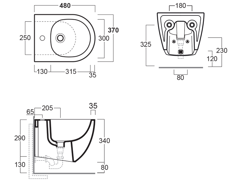 Биде подвесное SIMAS VIGNONI VI 29/F85 bia, в комплекте в креплениями, с 1 отверстием под смеситель, с переливом, размер XS 37x48x34 см, цвет белый глянцевый.