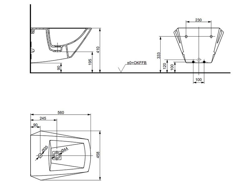 Биде подвесное TOTO JEWELHEX BT682V1#XW, 1 отверстие для смесителя, с переливом, размер 56х44.7x41 см, цвет белый. Требуемые комплектующие: сливной клапан, управляемый смесителем DH446VE.