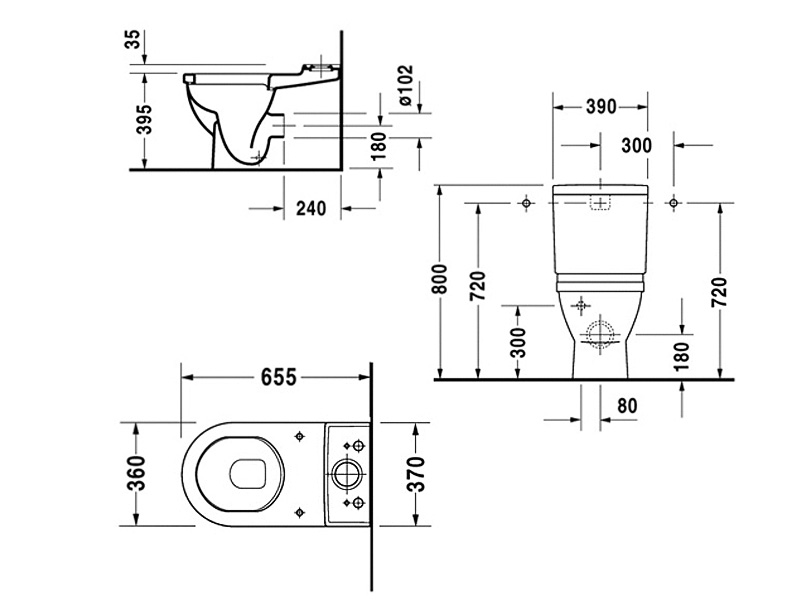 STARCK 3 Унитаз комбинированный с вертикальным смывом с отдельным бачком (бачок не включен) крепление включено сток для соединения Vario размер 36х65.5 см цвет белый