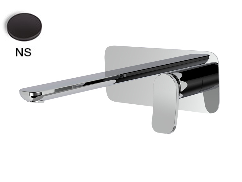 Cмеситель для раковины для настенного монтажа Fima Carlo Frattini FLO' F3821WLX5NS, цвет черный матовый. Только внешняя часть, излив 200 мм, максимальная скорость потока при 3 бар: 5 л/м, донный клапан click-clack 1``1/4, металлическая пластина, внутренняя часть (арт. F3600W) заказывается отдельно.