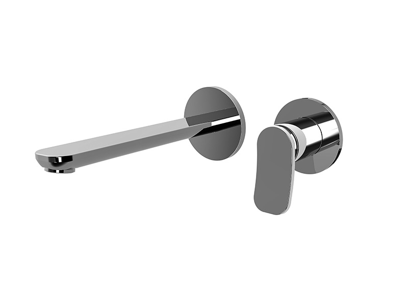 Cмеситель для раковины для настенного монтажа Fima Carlo Frattini FLO' F3821WLX8CR, цвет хром. Только внешняя часть, излив 200 мм, максимальная скорость потока при 3 бар: 5 л/м, донный клапан click-clack 1``1/4, металлическая пластина, внутренняя часть (арт. F3600W) заказывается отдельно.