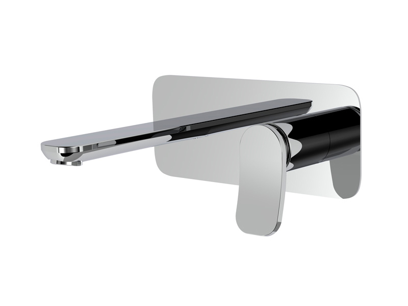 Cмеситель для раковины для настенного монтажа Fima Carlo Frattini FLO' F3821WX5CR, цвет хром. Только внешняя часть, излив 150 мм, максимальная скорость потока при 3 бар: 5 л/м, донный клапан click-clack 1``1/4, металлическая пластина, внутренняя часть (арт. F3600W) заказывается отдельно.