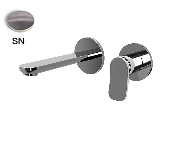 Cмеситель для раковины для настенного монтажа Fima Carlo Frattini FLO' F3821WX8SN, с донным клапаном, цвет никель брашированный. Только внешняя часть, излив 150 мм, максимальная скорость потока при 3 бар: 5 л/м, донный клапан click-clack 1``1/4, металлическая пластина, внутренняя часть (арт. F3600W) заказывается отдельно.