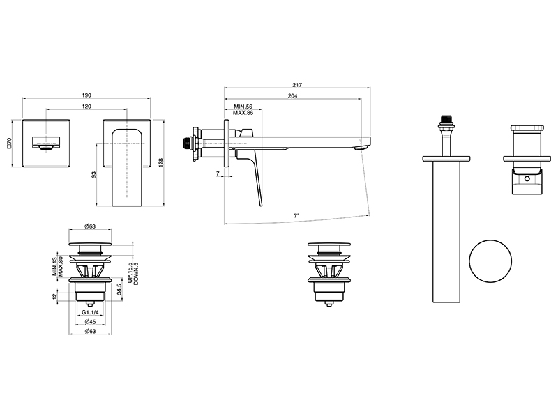 Cмеситель для раковины встраиваемый FIMA CARLO FRATTINI FIT F3391WLX8CR, излив 200 мм, в комплекте с донным клапаном, цвет хром. Встраиваемая часть арт. F3600W приобретаются отдельно.