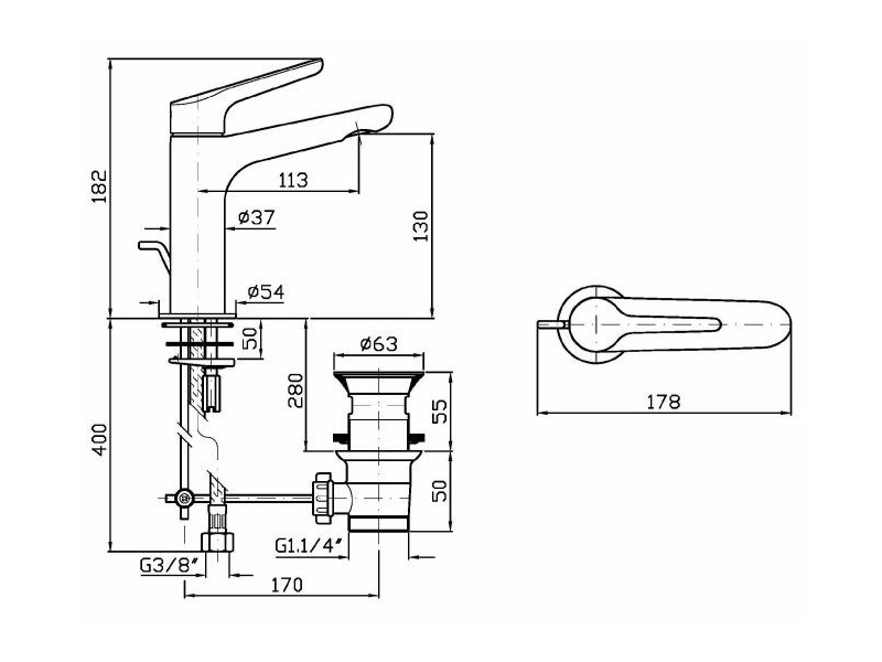 Cмеситель на раковину ZUCCHETTI MEDAMEDA ZMM710 однорычажный, на 1 отверстие, с донным клапаном, цвет хром.