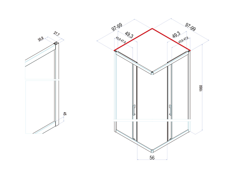 Душевые двери раздвижные SAMO CEE ART B0921L96TR, размер 97-99х195см, стекло прозрачное, профиль черный матовый, реверсивный вариант.