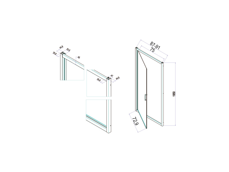 Душевая дверь распашная SAMO CEE ART B0903L96TR, размер 87-91х195см, стекло прозрачное, профиль черный матовый, реверсивный вариант. Можно укомплектовать неподвижным элементом B092.