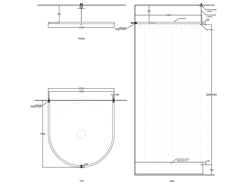 CIELO I CATINI CAAS Душевая штанга для душевого поддона, . регулируется по высоте. Рекомендуем используя 2 шторы шириной 150 см и высотой 220 или 240 см. Во избежание утечки воды рекомендуется убедиться, что занавеска висит внутри душа.