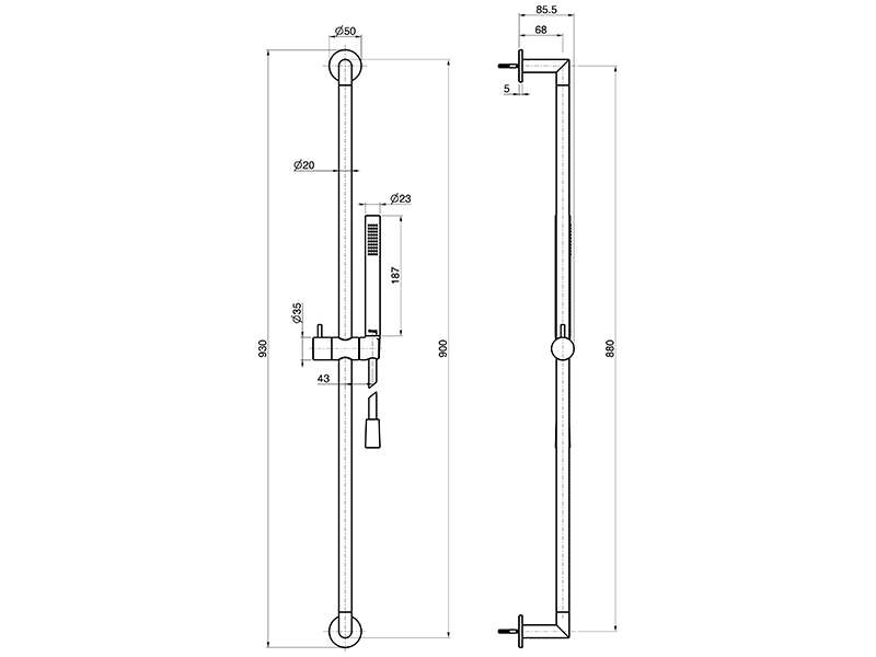 SPILLO INOX Душевая штанга с душевым комплектом, цвет сталь.