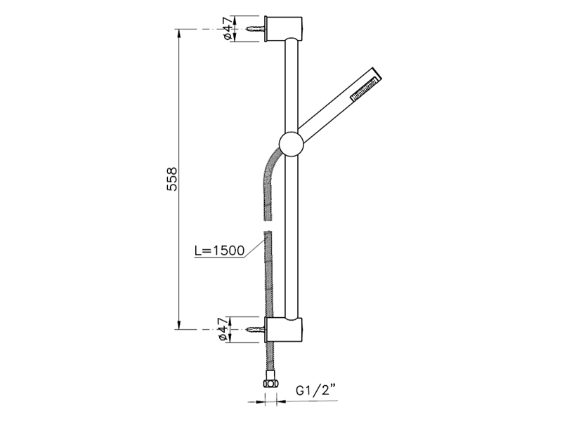 Душевая штанга с ручным душем, цвет хром