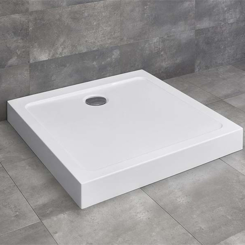 Плоский, квадратный акриловый поддонй с цельнолитой панелью (с 4 сторон). Предназначенный для монтажа на ножках (в комплекте). Отверстие для сифона Ø90мм. Рекомендуемый сифон: R500, R400 Slim. Размер 100x100x11.5 см, цвет белый.