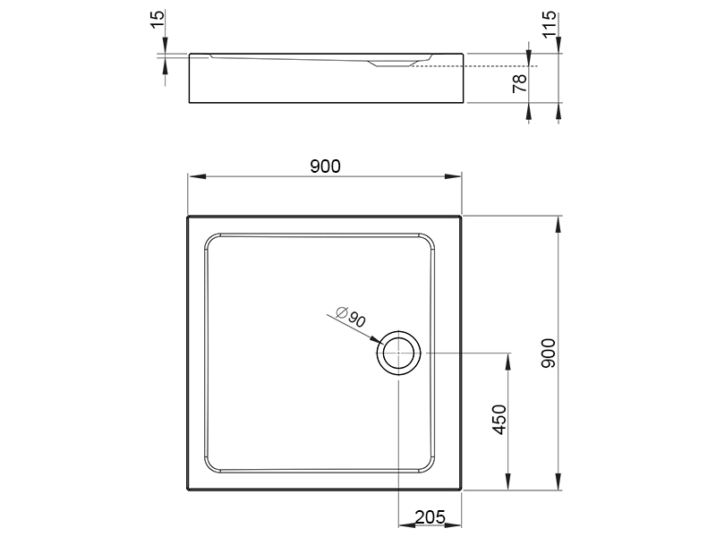 Плоский, квадратный акриловый поддонй с цельнолитой панелью (с 4 сторон). Предназначенный для монтажа на ножках (в комплекте). Отверстие для сифона Ø90мм. Рекомендуемый сифон: R500, R400 Slim. Размер 90x90x11.5 см, цвет белый.