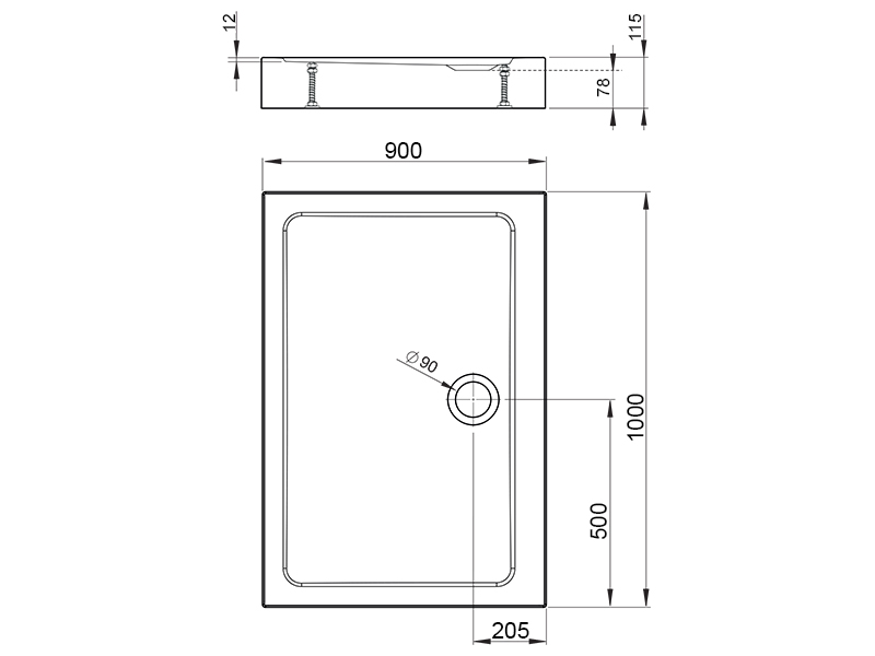 Акриловый душевой поддон RADAWAY Doros D Compact SDRD1090-05. Плоский, прямоугольный акриловый поддон с цельнолитой панелью (с 4 сторон). Предназначенный для монтажа на ножках (в комплекте). Отверстие для сифона Ø90мм по середине длинного бока. Рекомендуемый сифон: R500, R400 Slim. Размер 100x90x11.5 см, цвет белый.
