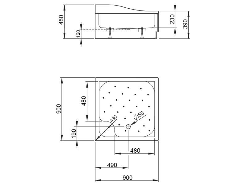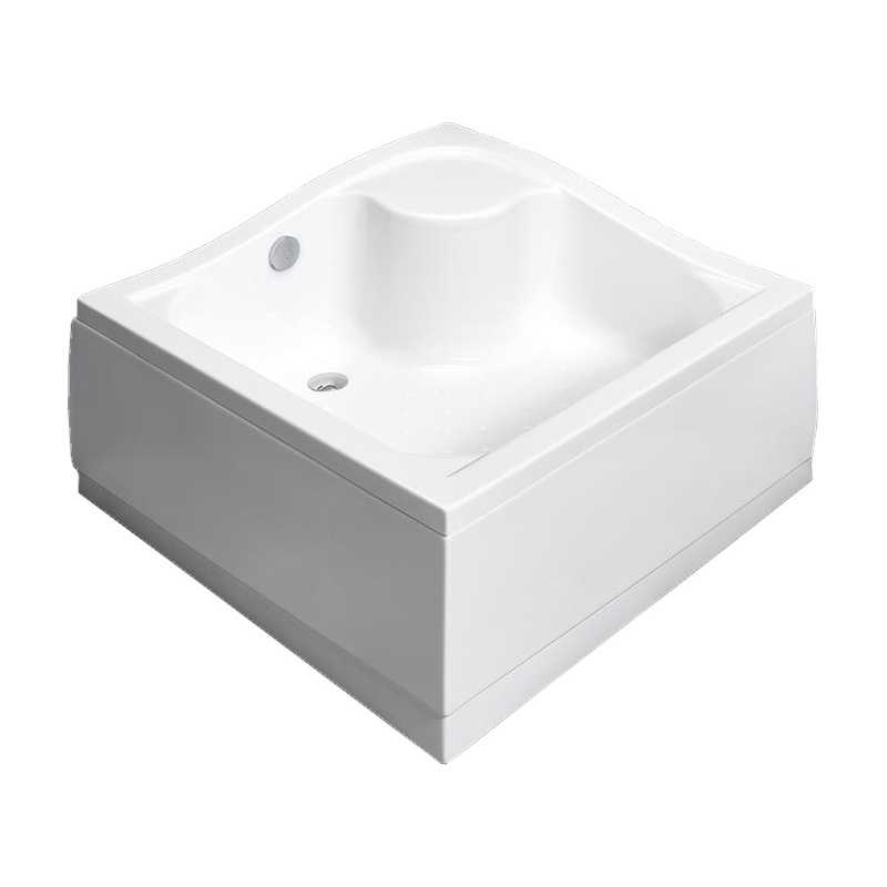 Глубокий, акриловый поддон со съемной панелью. Для установки на ножках (в комплекте). Отверстие под сифон Ø 50 мм. Рекомендуемые сифоны: B602R, R135.. Размер 90x90x39 см, цвет белый.