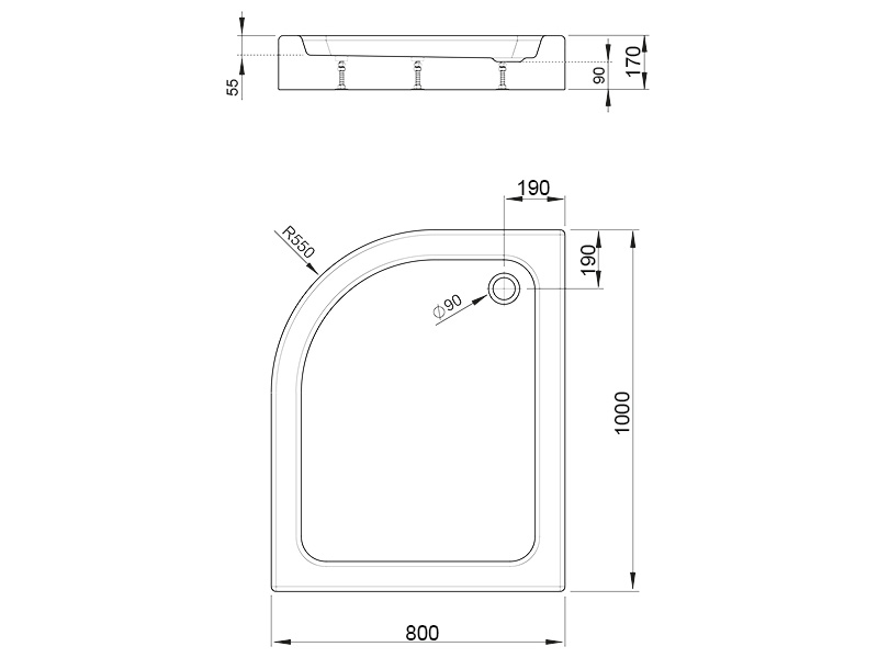 Акриловый поддон с цельнолитой панелью. Ножки в комплекте. Отверстие под сифон Ø 90мм. Рекомендуемые сифоны: TB90, TB21, R500, 690. Размер 100x80x17 см, цвет белый.