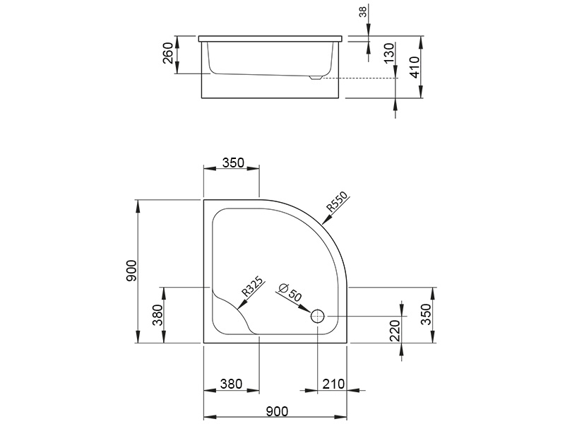 Глубокий акриловый поддон на базе из пенопласта для облицовки плиткой или мозаикой. Отверстие под сифон Ø 50 мм, рекомендуемыe сифоны: TB50, 578. Размер 90x90x41 см, цвет белый.