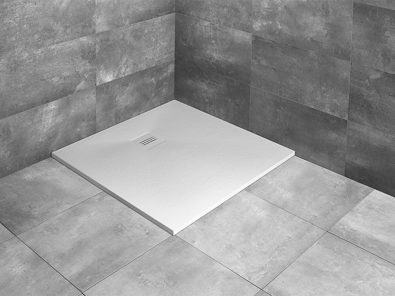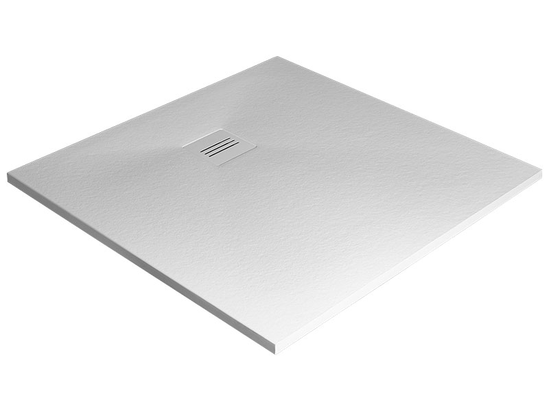 Квадратный плоский поддон из литьевого мрамора, с антискользящим покрытием. Поддон предназначен для монтажа непосредственно на пол. Отверстие под сифон Ø 90 мм Размер 100x100x3 см, цвет белый.