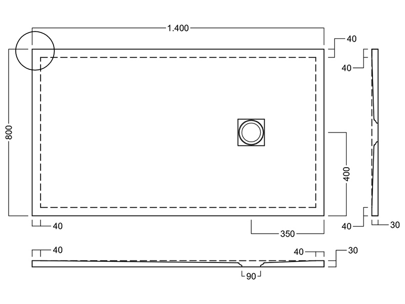 Поддон душевой керамический HATRIA LIF H3 EVO P0Y9BJ01, размер 140х80х3 см, цвет белый. Квадратная крышка сифона, сифон в комплекте.