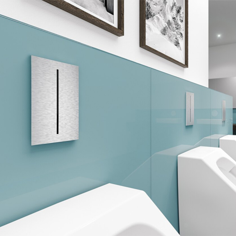 Электронная панель смыва для писсуара TECE Tecefilo 9242071 с ИК-сенсором, батарея 7,2 В, нержавеющая сталь сатин, с покрытием против отпечатков пальцев. Комплект для монтажа бесконтактного инфракрасного смывного устройства, совместим с корпусом U 2 сливного клапана писсуара TECE; Минимальное рабочее давление в системе — 0,5 бар; Возможность настройки времени смыва, паузы для экономии воды, установки крышки писсуара, режима чистки, предварительного и гигиенического смывов. Комплект поставки: