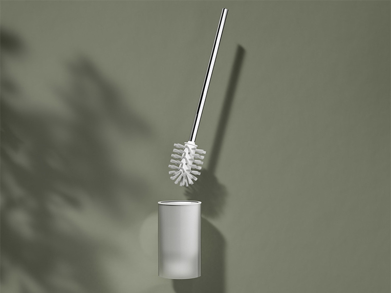 вставляемой пластиковой колбой, ершом с рукояткой и запасной головкой ершика. Цвет хром.
