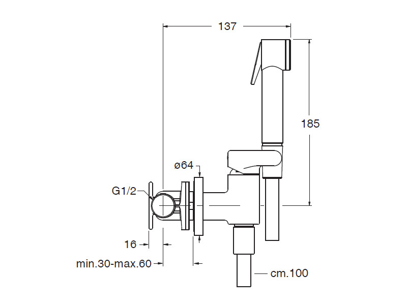 Гигиенический душ со смесителем CRISTINA WC JET WJ67851 для туалета/биде, с гибким шлангом «LONG LIFE» и ручным душем с защитой от известковых отложений, цвет хром.