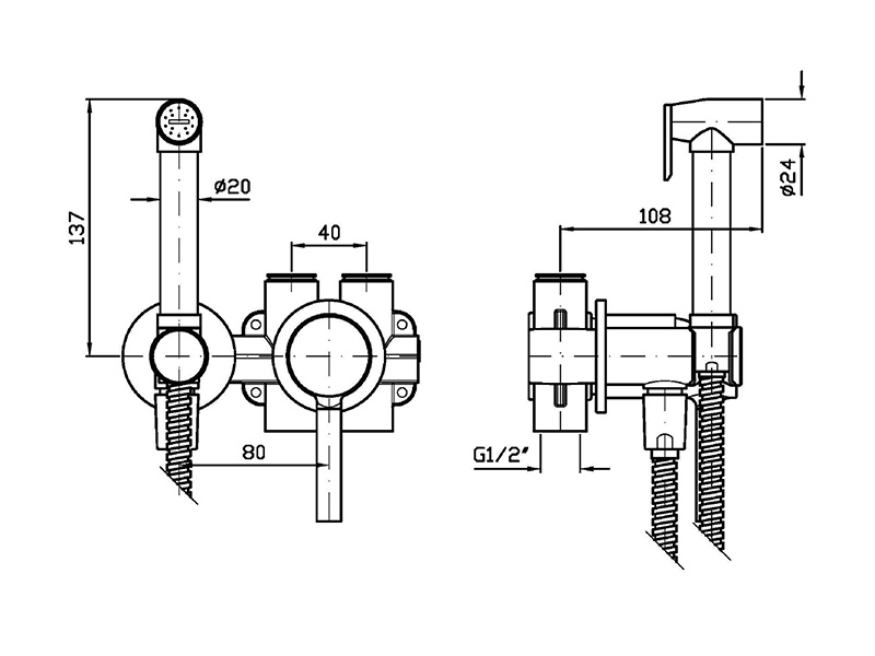 Гигиенический душ ZUCCHETTI PAN ZP6417 в комплекте со шлангом и смесителем, цвет хром/ Внутренняя часть арт. R99815 приобретается отдельно.