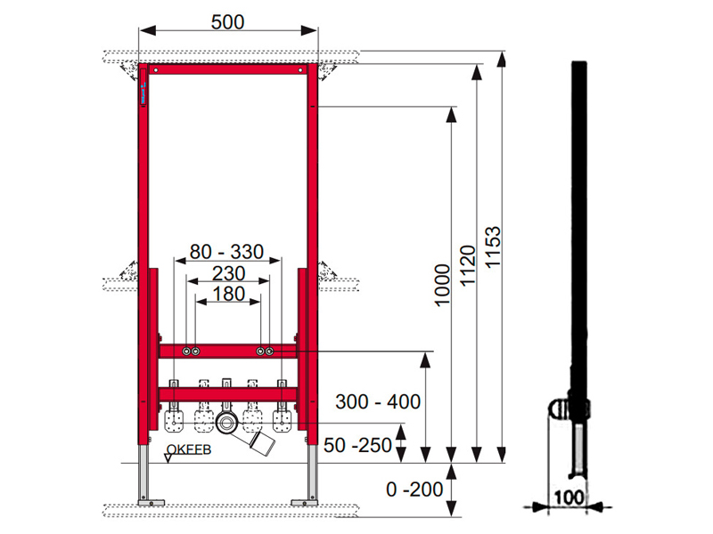 Инсталляция (h = 1120 мм) для установки биде TECE 9330000.
